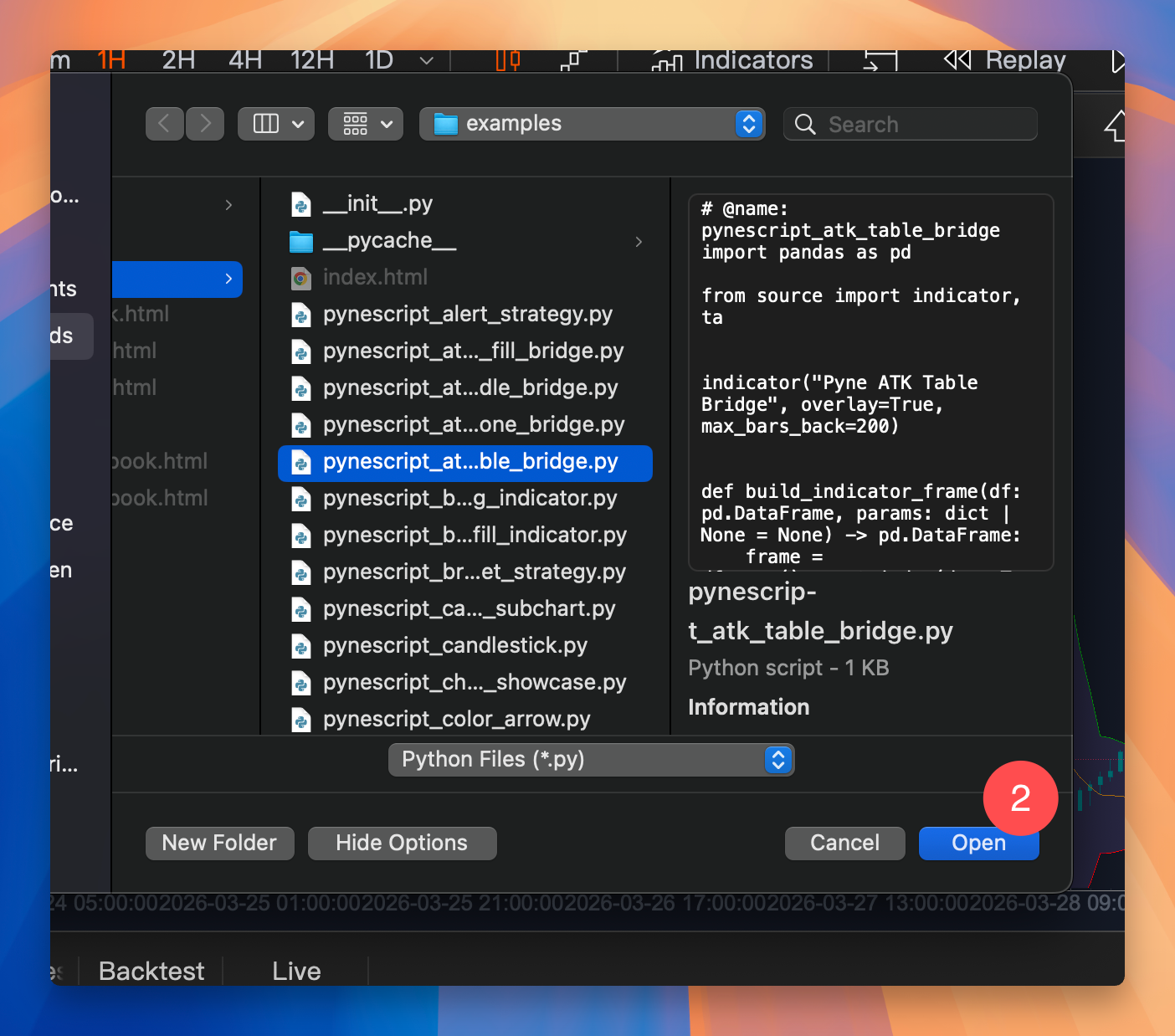 Follow these steps to import and run a PyneScript in the ATK app: